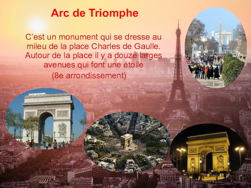 Arc de Triomphe   C’est un monument qui se dresse au mileu de la place Charles