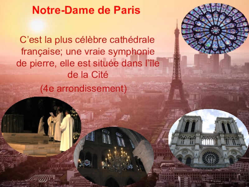 Notre-Dame de Paris   C’est la plus célèbre cathédrale française; une vraie symphonie de pierre, elle