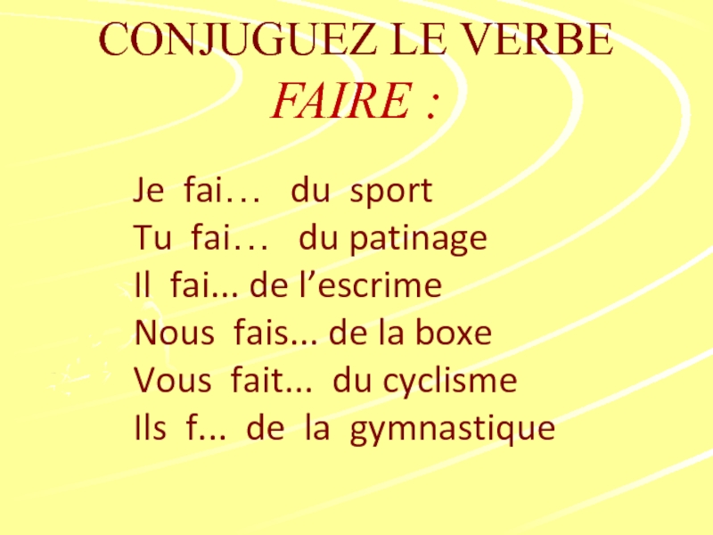 Слайд 10CONJUGUEZ LE VERBE FAIRE :