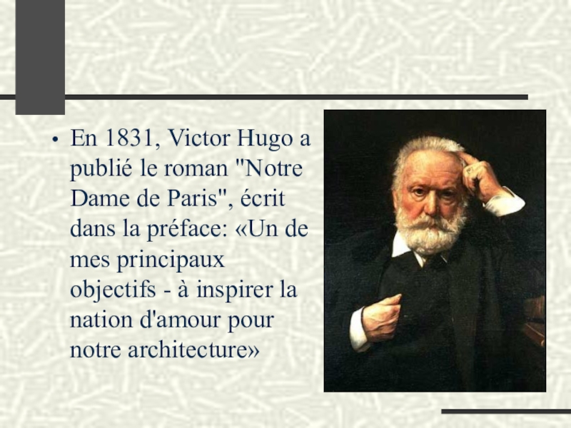Слайд 6En 1831, Victor Hugo a publié le roman "Notre Dame de