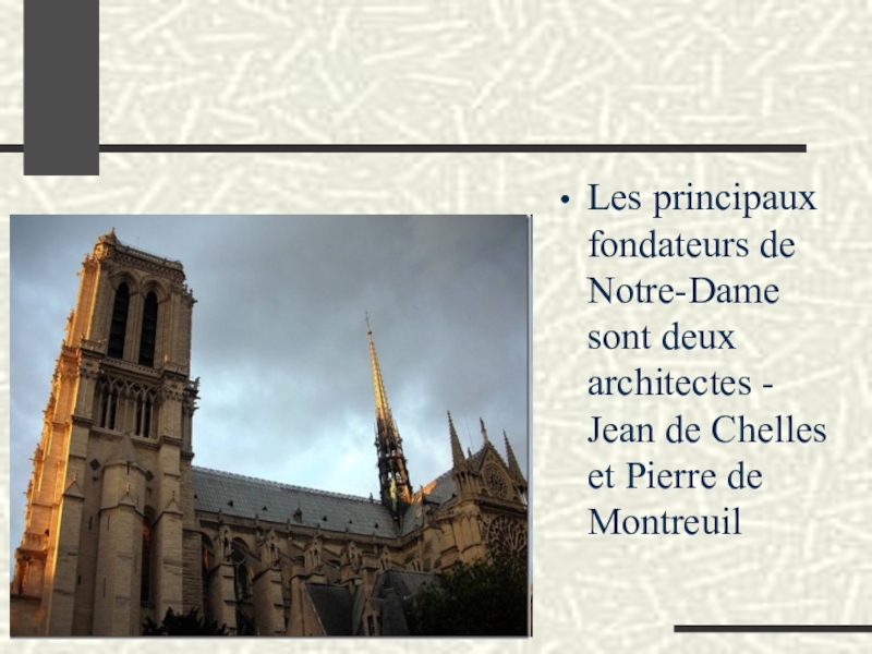 Слайд 5Les principaux fondateurs de Notre-Dame sont deux architectes - Jean de