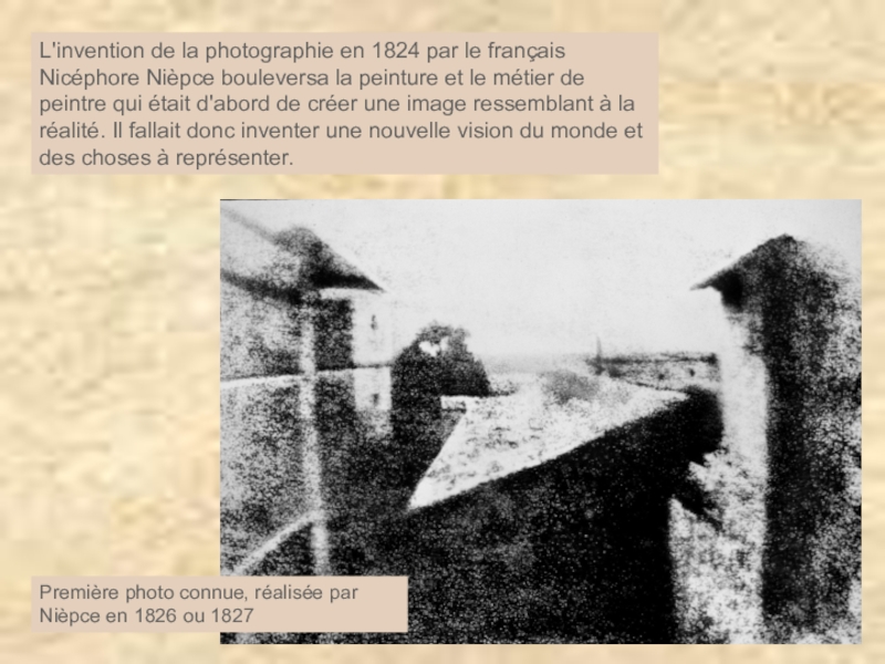 Première photo connue, réalisée par Nièpce en 1826 ou 1827