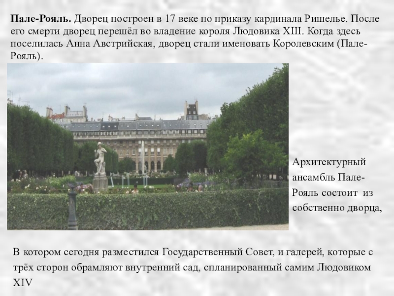 трёх сторон обрамляют внутренний сад, спланированный самим Людовиком