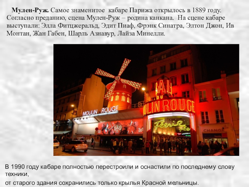 В 1990 году кабаре полностью перестроили и оснастили по последнему слову техники,