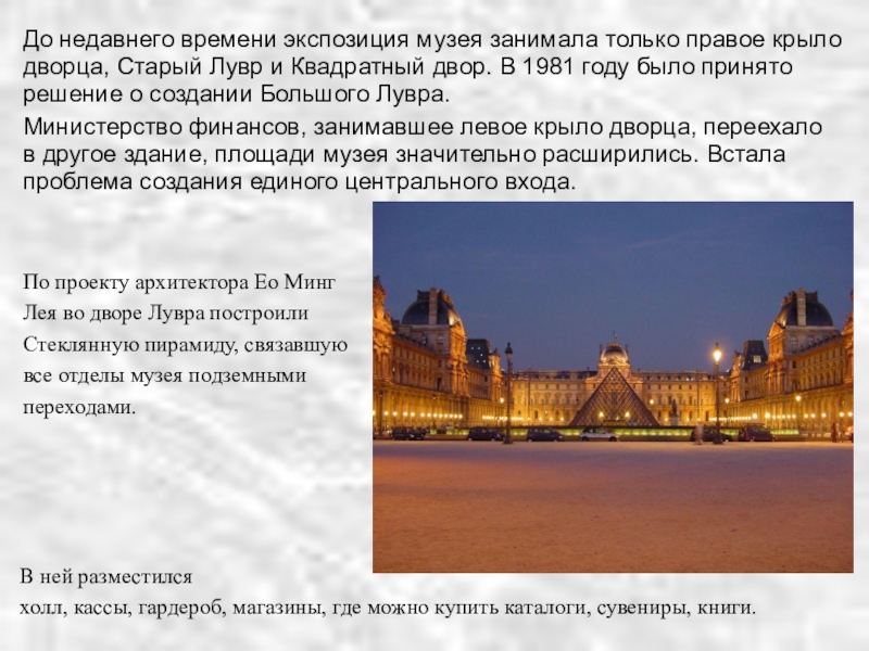 холл, кассы, гардероб, магазины, где можно купить каталоги, сувениры, книги.