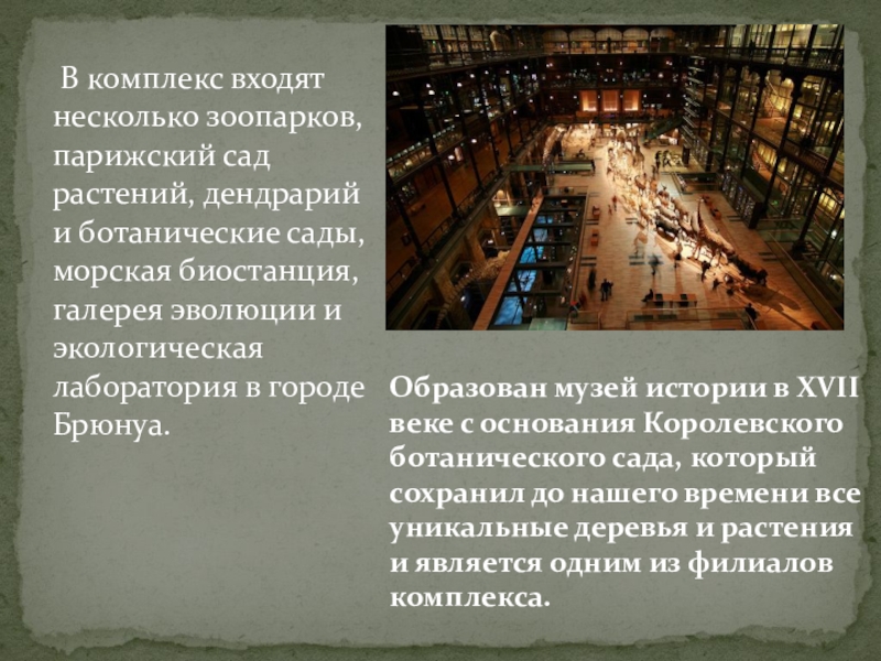 Образован музей истории в XVII веке с основания Королевского ботанического сада, который сохранил до нашего времени все уникальные деревья и растения и является одним из филиалов комплекса.