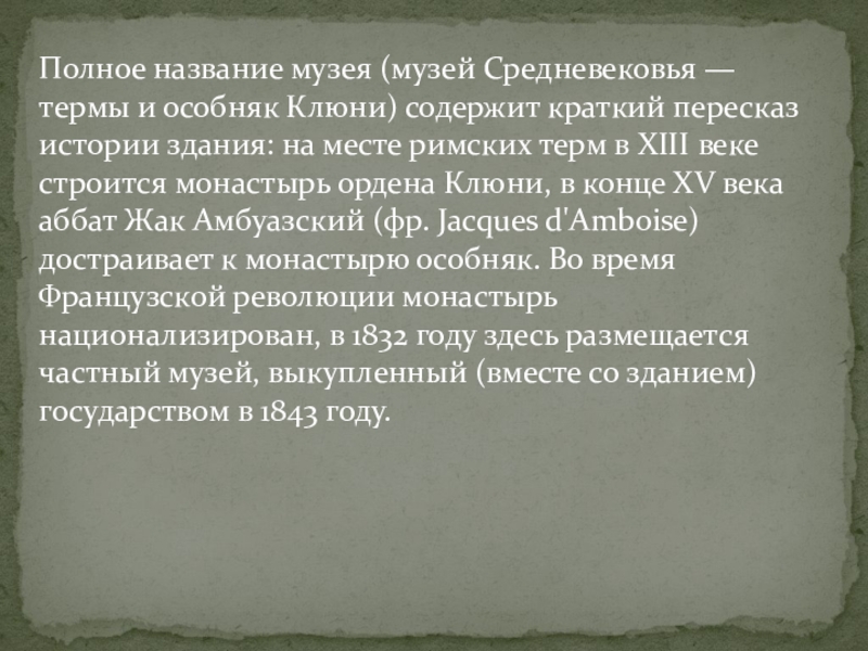 Musée national du Moyen Âge - Thermes et hôtel de Cluny