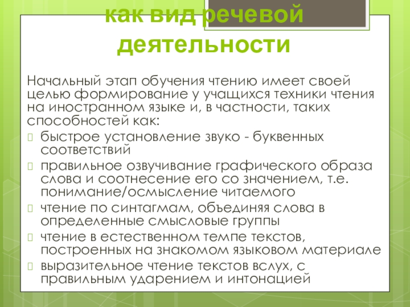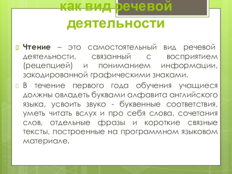 Чтение как вид речевой деятельности