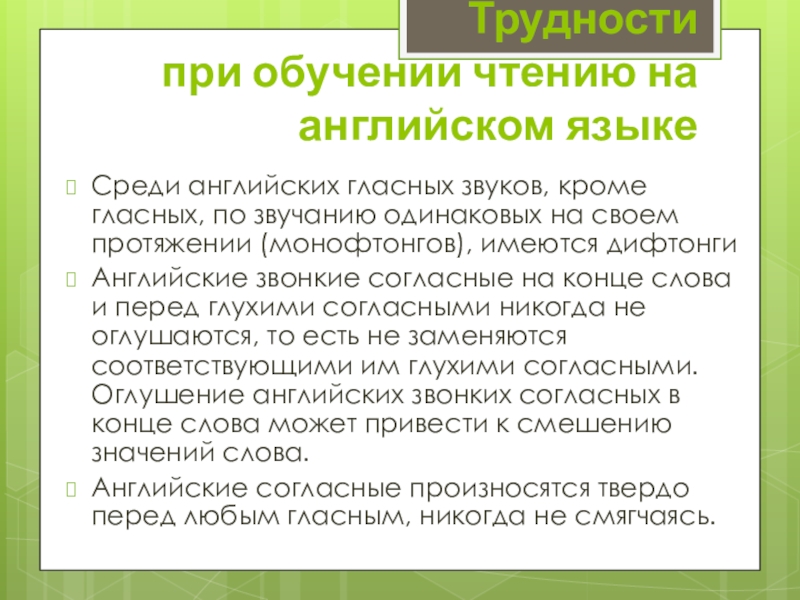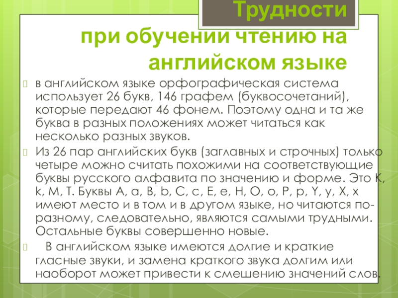 Трудности при обучении чтению на английском языке