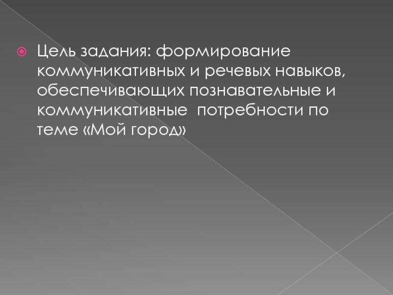 Цель задания: формирование коммуникативных и речевых навыков, обеспечивающих познавательные и коммуникативные потребности по теме «Мой город»