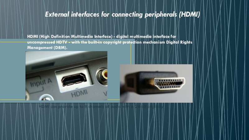 HDMI can provide up to 8 channels of audio with a 24-bit capacity