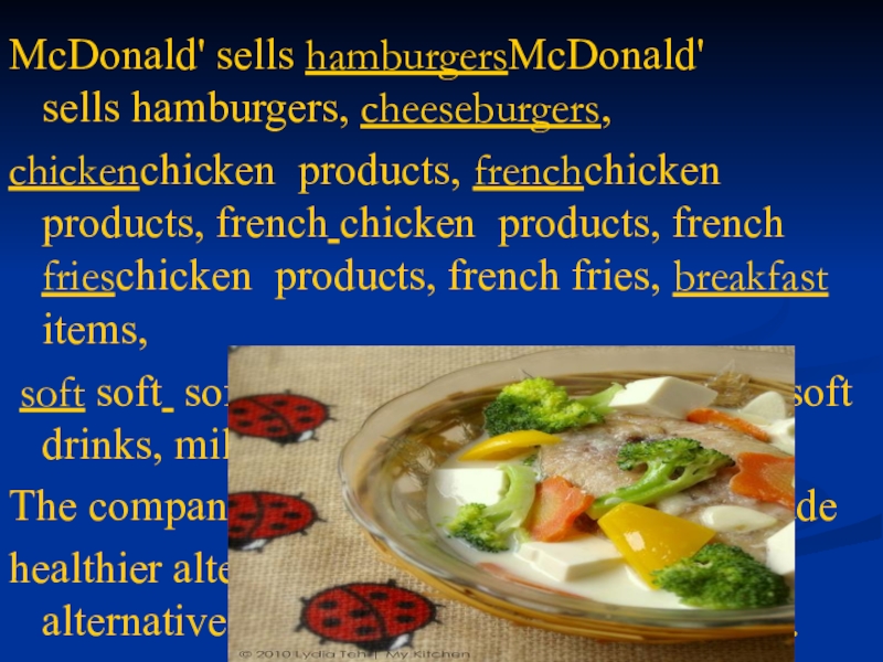 Слайд 15McDonald' sells hamburgersMcDonald' sells hamburgers, cheeseburgers,
