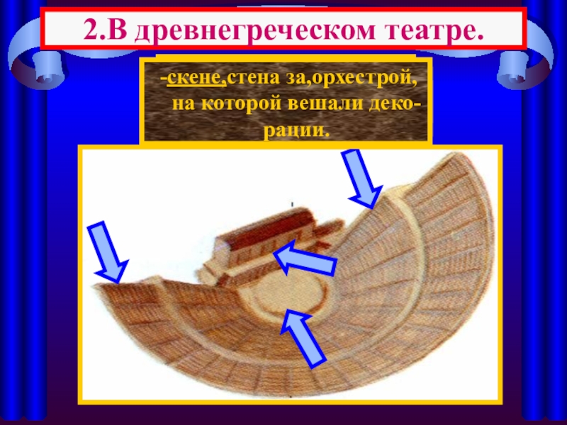 -скене,стена за,орхестрой, на которой вешали деко-рации.