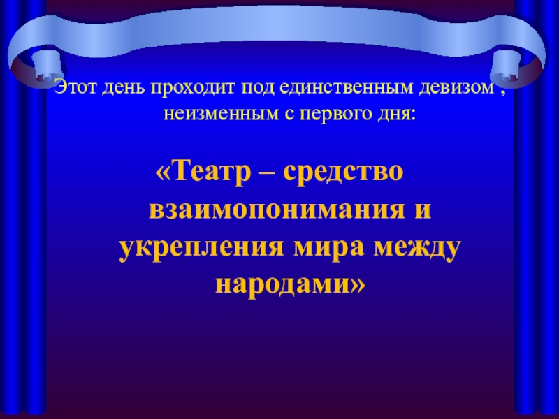 По замыслу, этот праздник, также как и вся деятельность организации в целом, должен способствовать укреплению мира и дружбы между народами и расширять творческое сотрудничество всех деятелей искусства в мире.