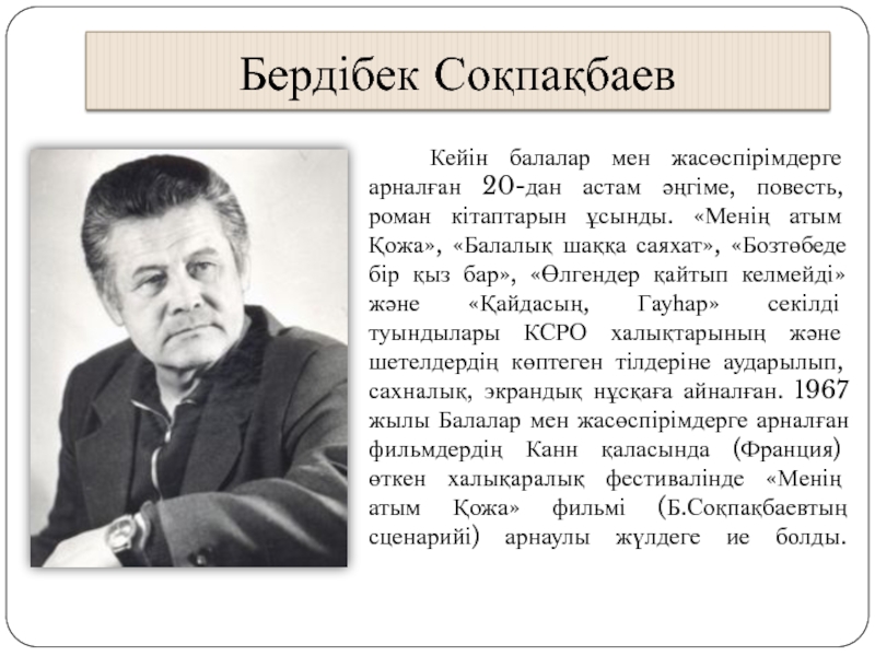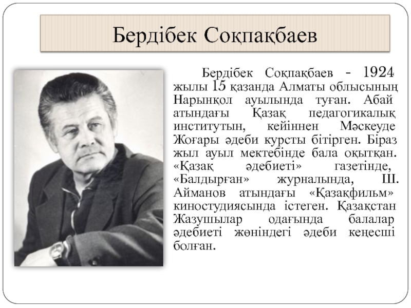 Слайд 2Соқпақбаев Бердібек Ыдырысұлы - жазушы