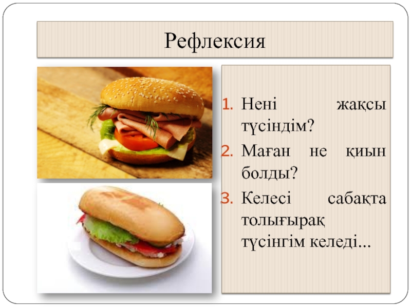 Нені жақсы түсіндім?Маған не қиын болды?Келесі сабақта толығырақ түсінгім келеді...Рефлексия
