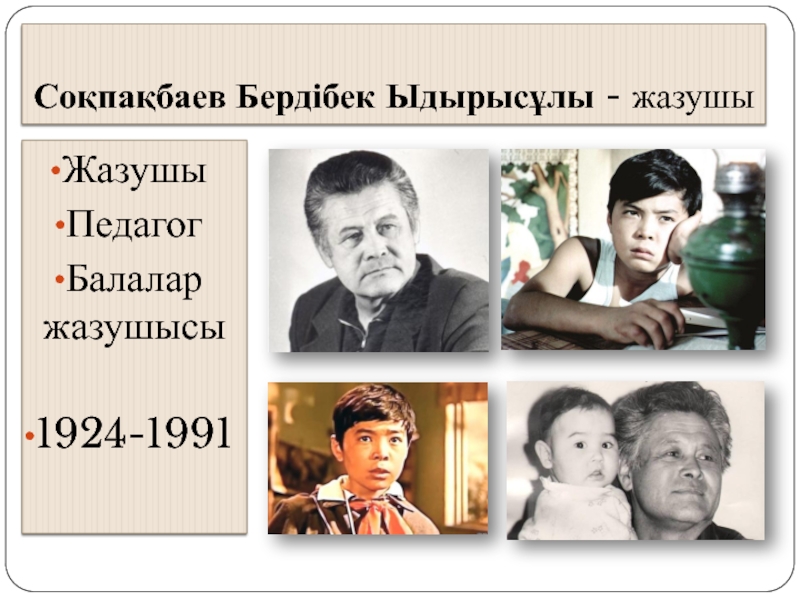 Соқпақбаев Бердібек Ыдырысұлы - жазушыЖазушыПедагогБалалар жазушысы1924-1991