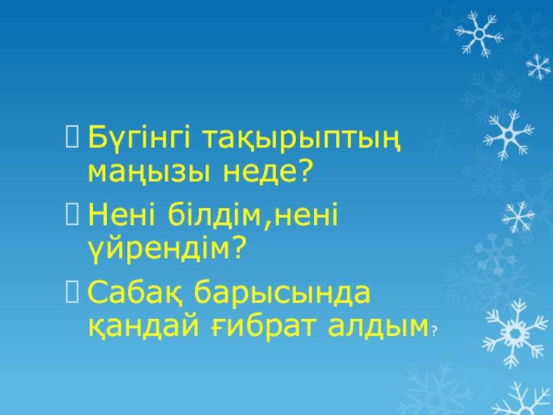 Бүгінгі тақырыптың маңызы неде?Нені білдім,нені үйрендім?Сабақ барысында қандай ғибрат алдым?