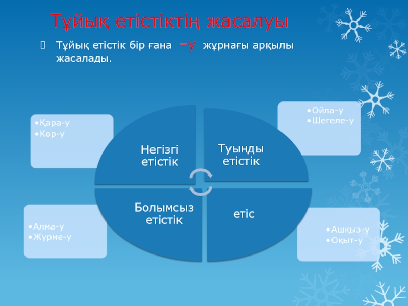 Тұйық етістіктің жасалуыТұйық етістік бір ғана –у жұрнағы арқылы жасалады.