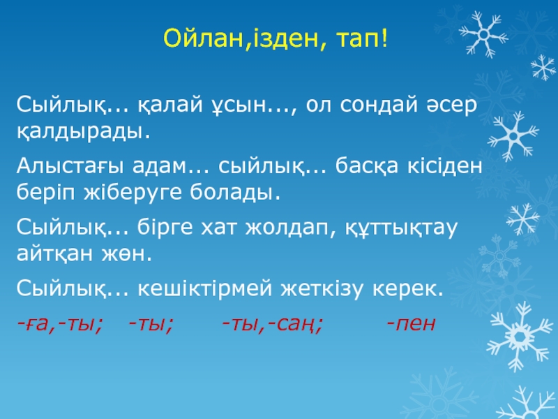 Презентация, доклад по казахскому языку на тему Сыйлықты қай кезде береді (7 класс)