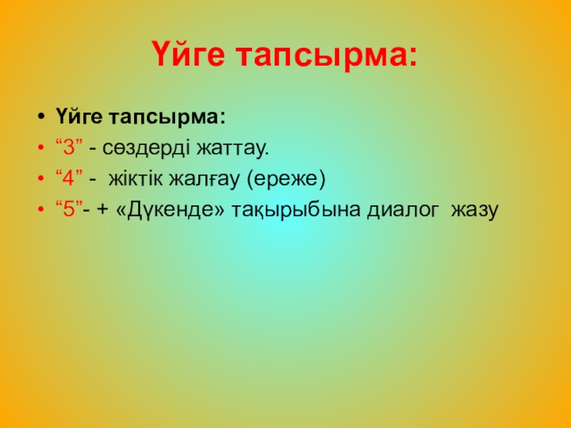 “5”- + «Дүкенде» тақырыбына диалог жазу