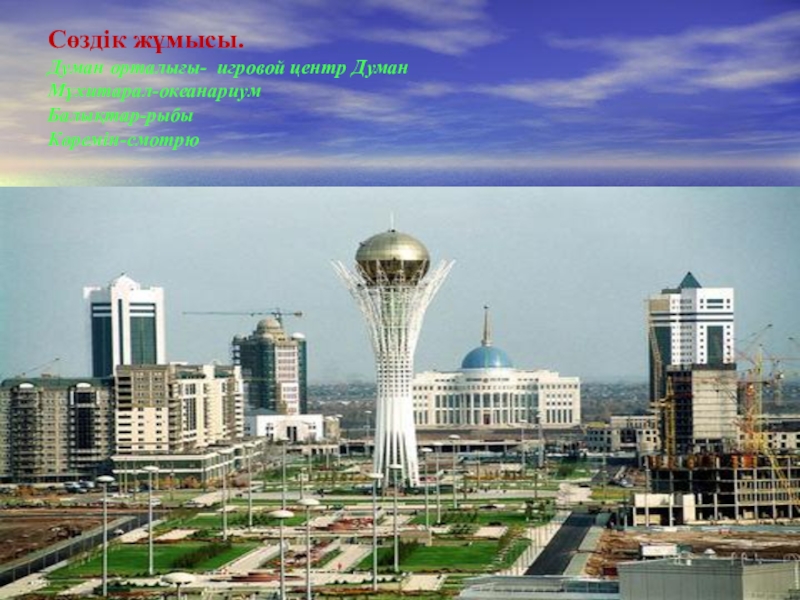 жасау.Елордамыздың көрікті мәдени орталығымен таныстыру.