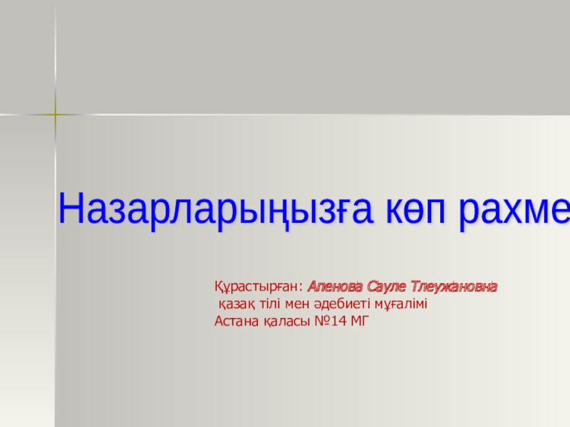Назарларыңызға көп рахмет! Құрастырған: Апенова Сауле Тлеужановна қазақ тілі мен әдебиеті мұғаліміАстана қаласы №14 МГ