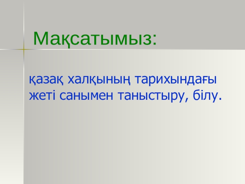 Мақсатымыз: қазақ халқының тарихындағы жеті санымен таныстыру, білу.
