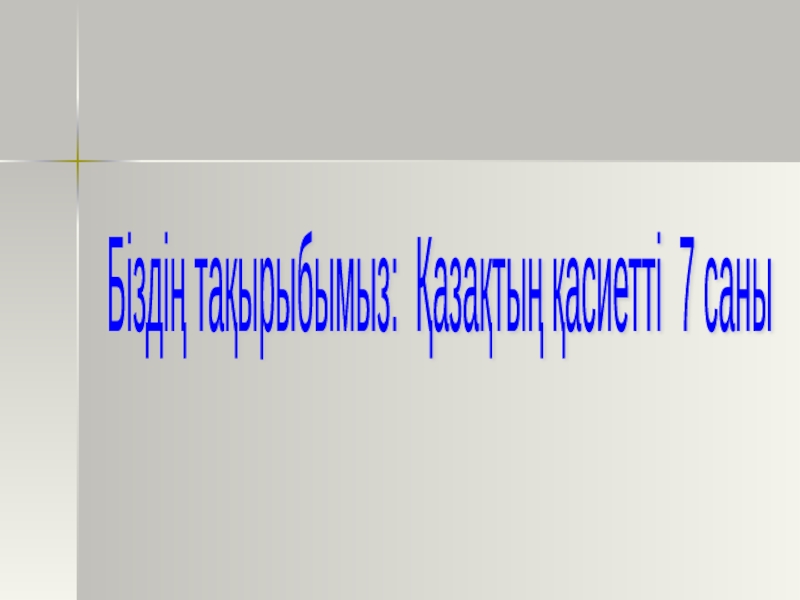 Слайд 1Біздің тақырыбымыз: Қазақтың қасиетті 7 саны
