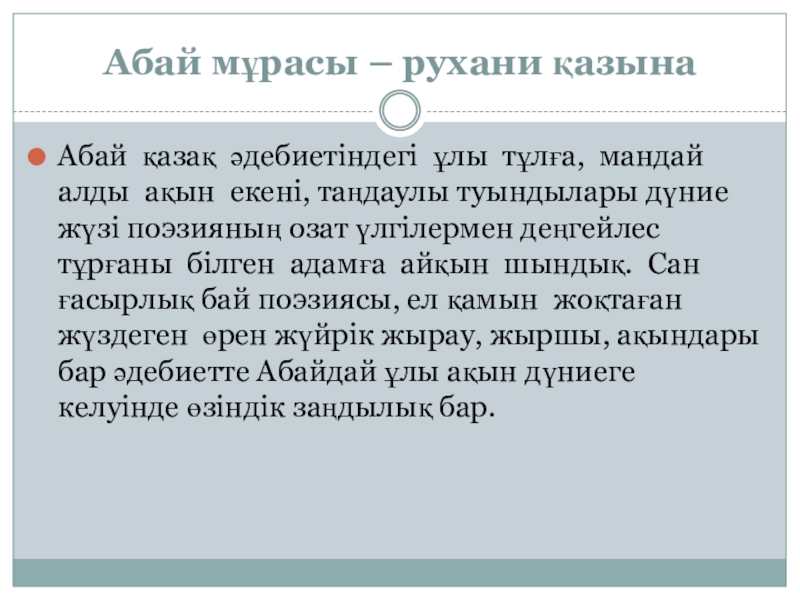 Абай қазақ әдебиетіндегі ұлы тұлға, мандай алды