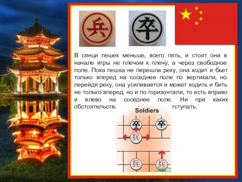 Слайд 18В сянци пешек меньше, всего пять, и стоят они в начале