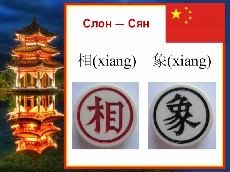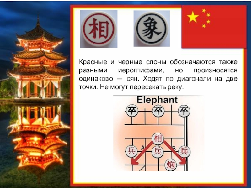 Слайд 12Красные и черные слоны обозначаются также разными иероглифами, но произносятся одинаково