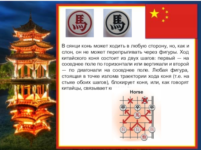 Слайд 14В сянци конь может ходить в любую сторону, но, как и