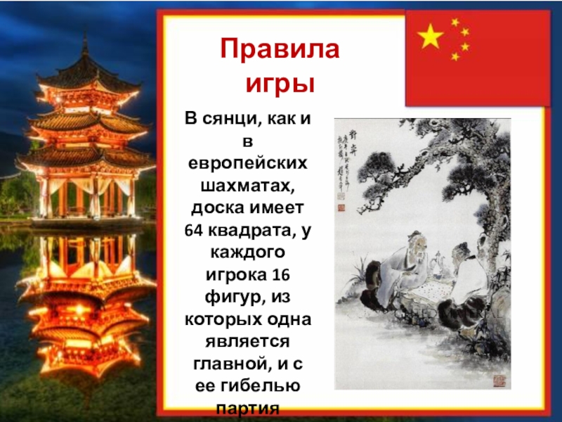 Слайд 2В сянци, как и в европейских шахматах, доска имеет 64 квадрата,