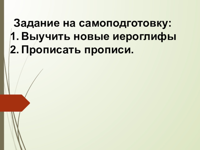 Задание на самоподготовку:Выучить новые иероглифыПрописать прописи.