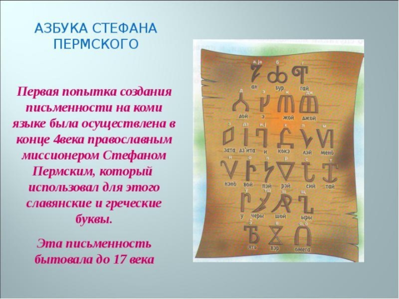 Презентация, доклад по коми языку для 4 класса по теме Коми азбука