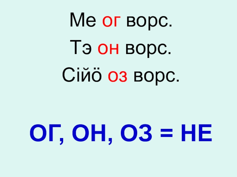 Ме ог ворс.Тэ он ворс.Сiйӧ оз ворс.ОГ, ОН, ОЗ = НЕ