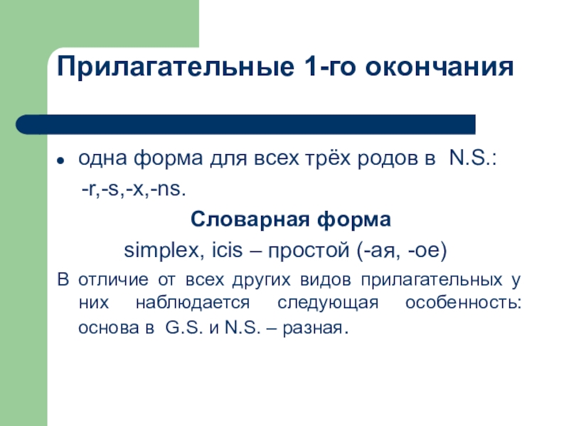 В отличие от всех других видов прилагательных у них наблюдается следующая особенность: основа в G.S. и N.S. – разная.