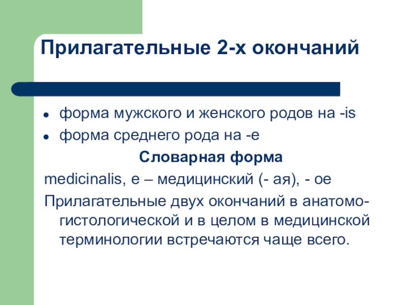 Прилагательные двух окончаний в анатомо-гистологической и в целом в медицинской терминологии встречаются чаще всего.