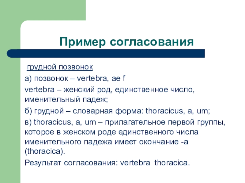 Результат согласования: vеrtebra thoracica.