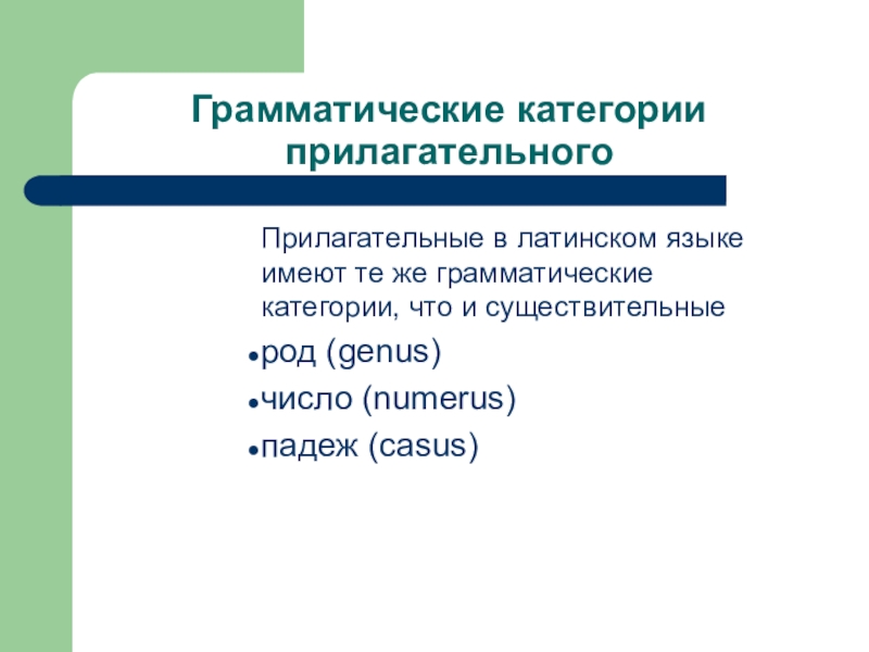 Прилагательные в латинском языке имеют те же грамматические категории,