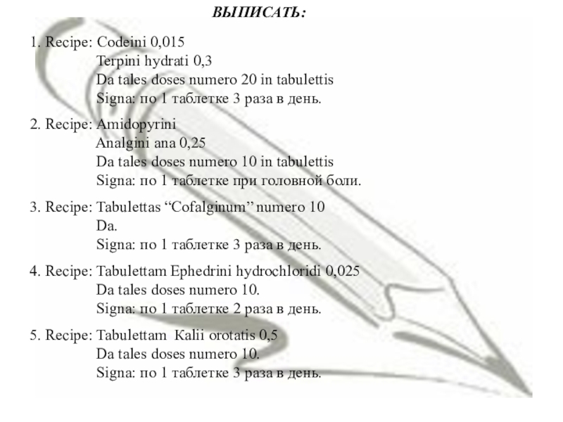 1. 10 порошков из листьев наперстянки (folia Digitalis) по 40 мг. Назначить по 1 порошку 3 раза в день.