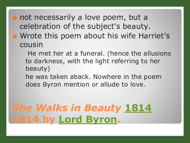 Слайд 15She Walks in Beauty 1814 1814 by Lord Byron.