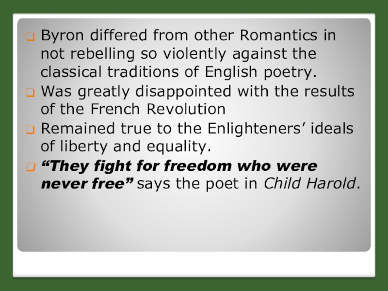 “They fight for freedom who were never free” says the poet in Child Harold.