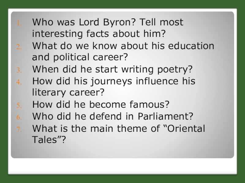 Back in London in 1812, Byron entered the House of Lords. After “Child Harold's Pilgrimage” he suddenly became famous.