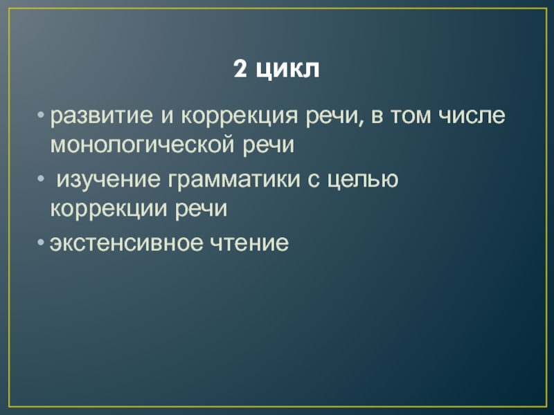 2 циклразвитие и коррекция речи, в том числе монологической речи изучение грамматики с целью коррекции речиэкстенсивное чтение