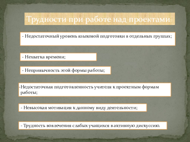 - Трудность вовлечения слабых учащихся в активную дискуссию.