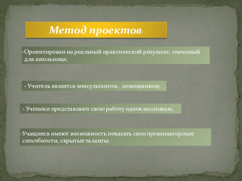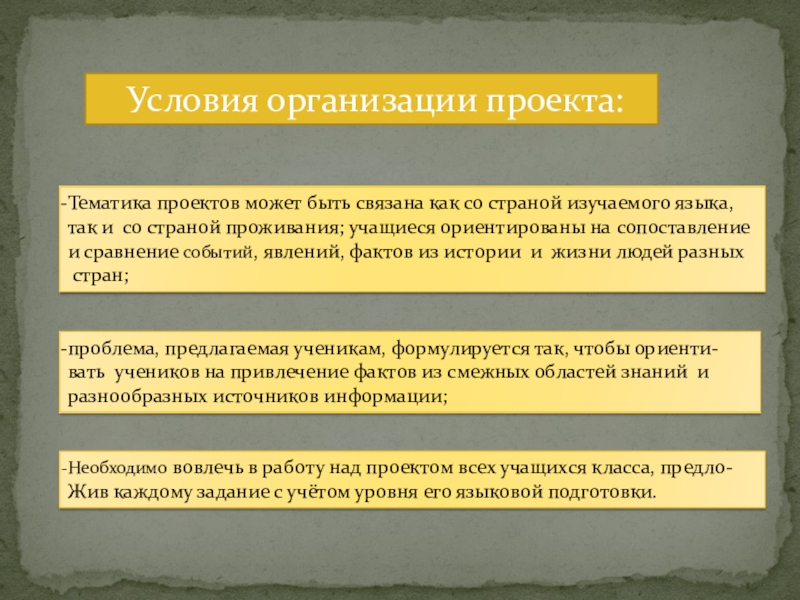 Необходимо вовлечь в работу над проектом всех учащихся класса, предло-