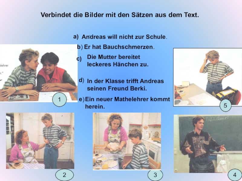 Verbindet die Bilder mit den Sätzen aus dem Text.