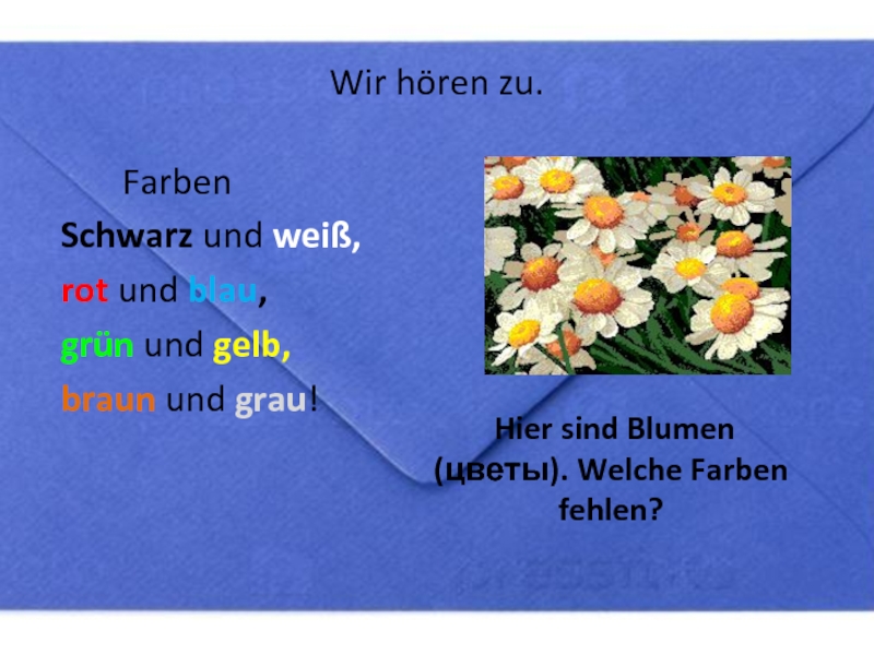 Hier sind Blumen (цветы). Welche Farben fehlen?